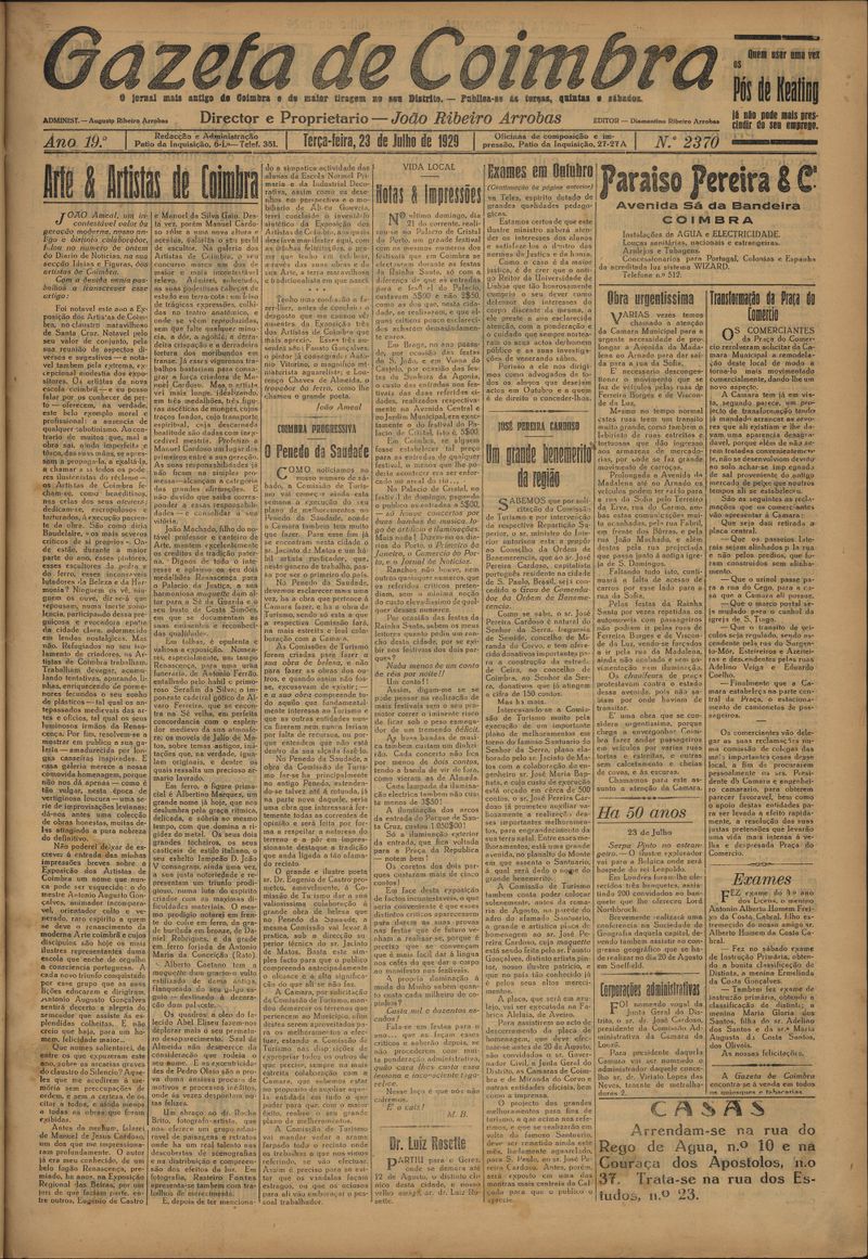 Gazeta de Coimbra 1929, Julho 23, terça-feira - Nº2370