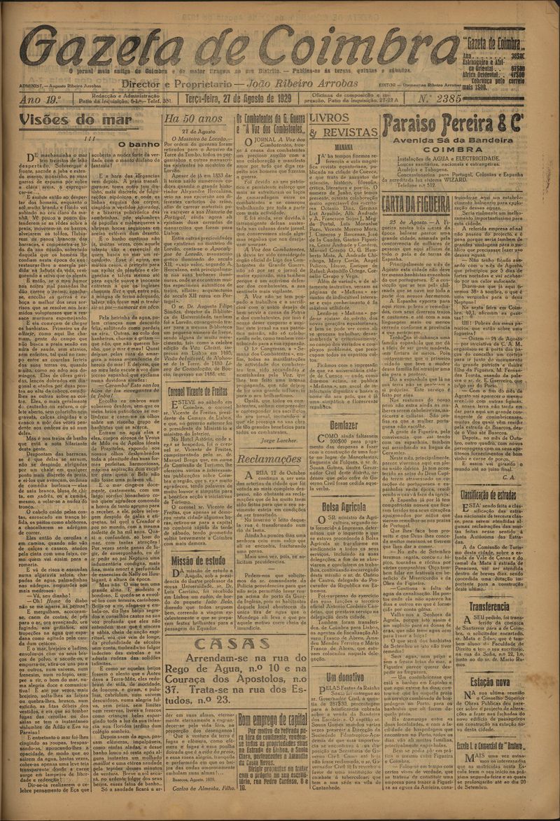 Gazeta de Coimbra 1929, Agosto 27, terça-feira - Nº2385