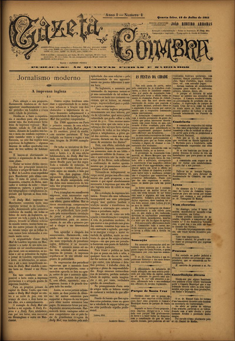 Gazeta de Coimbra 1911, Julho 12, quarta-feira - Nº4