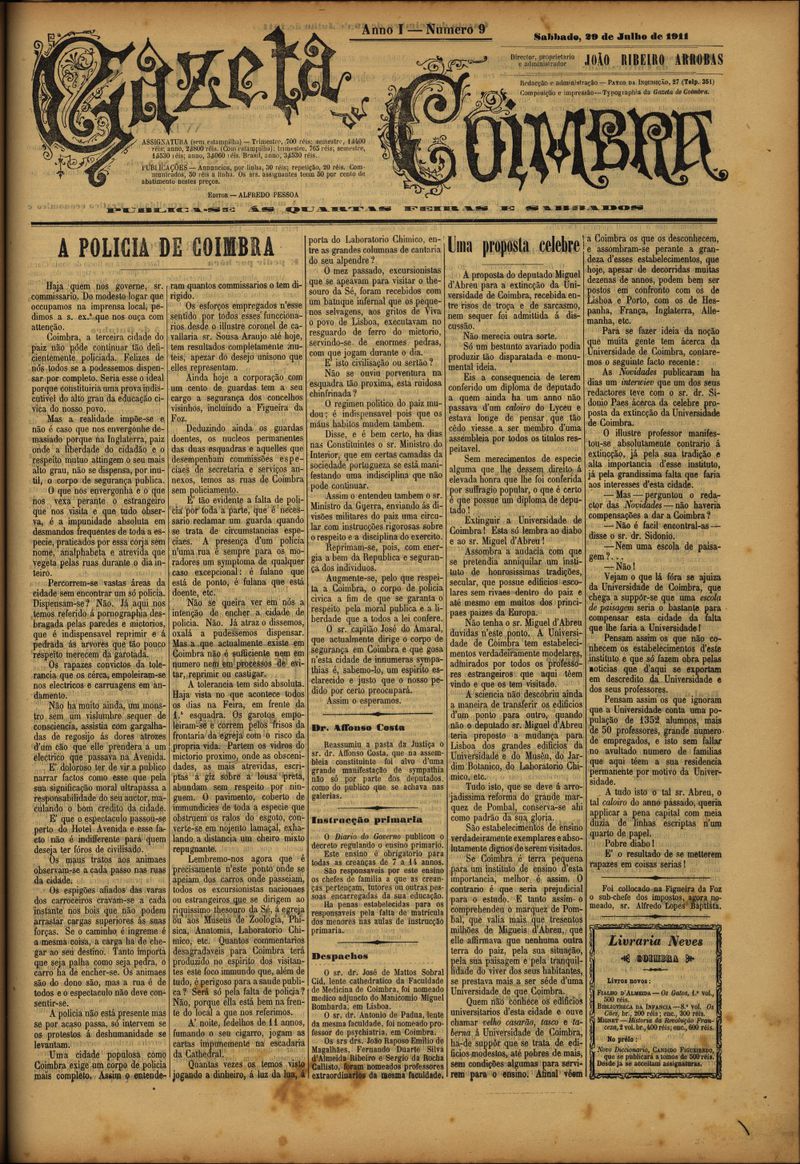 Gazeta de Coimbra 1911, Julho 29, sábado - Nº9