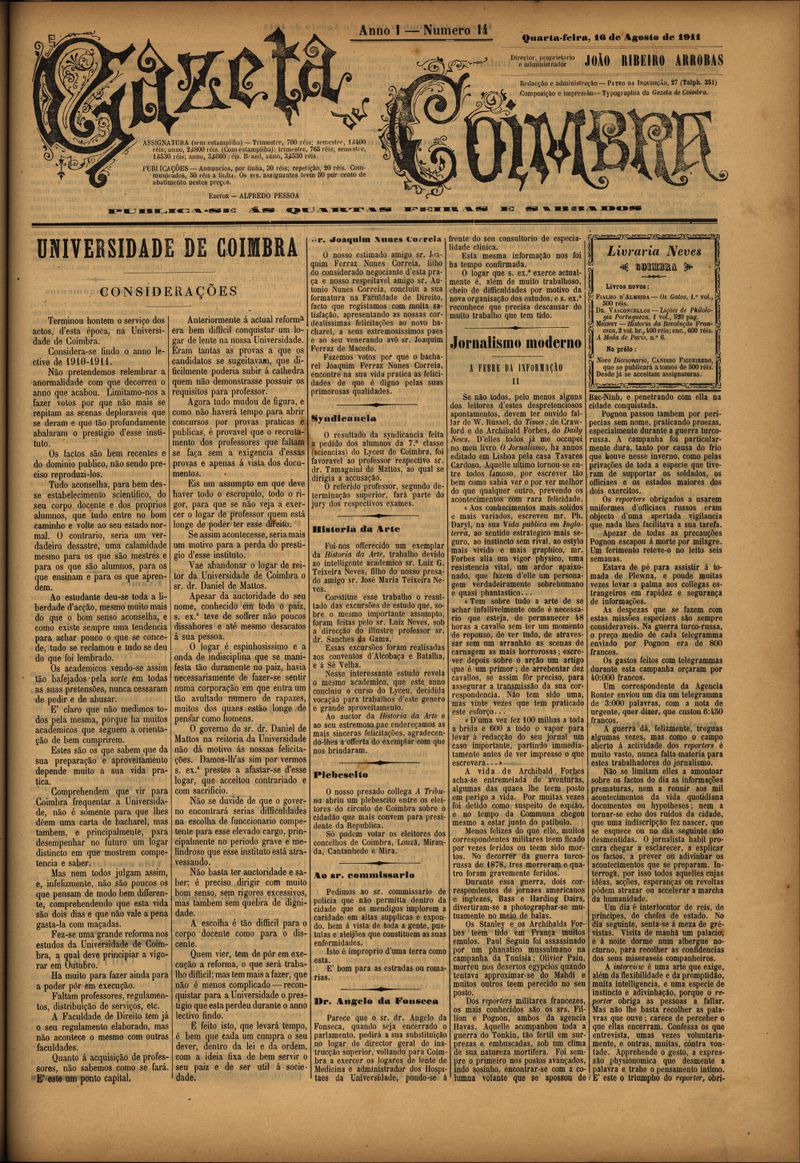 Gazeta de Coimbra 1911, Agosto 16, quarta-feira - Nº14