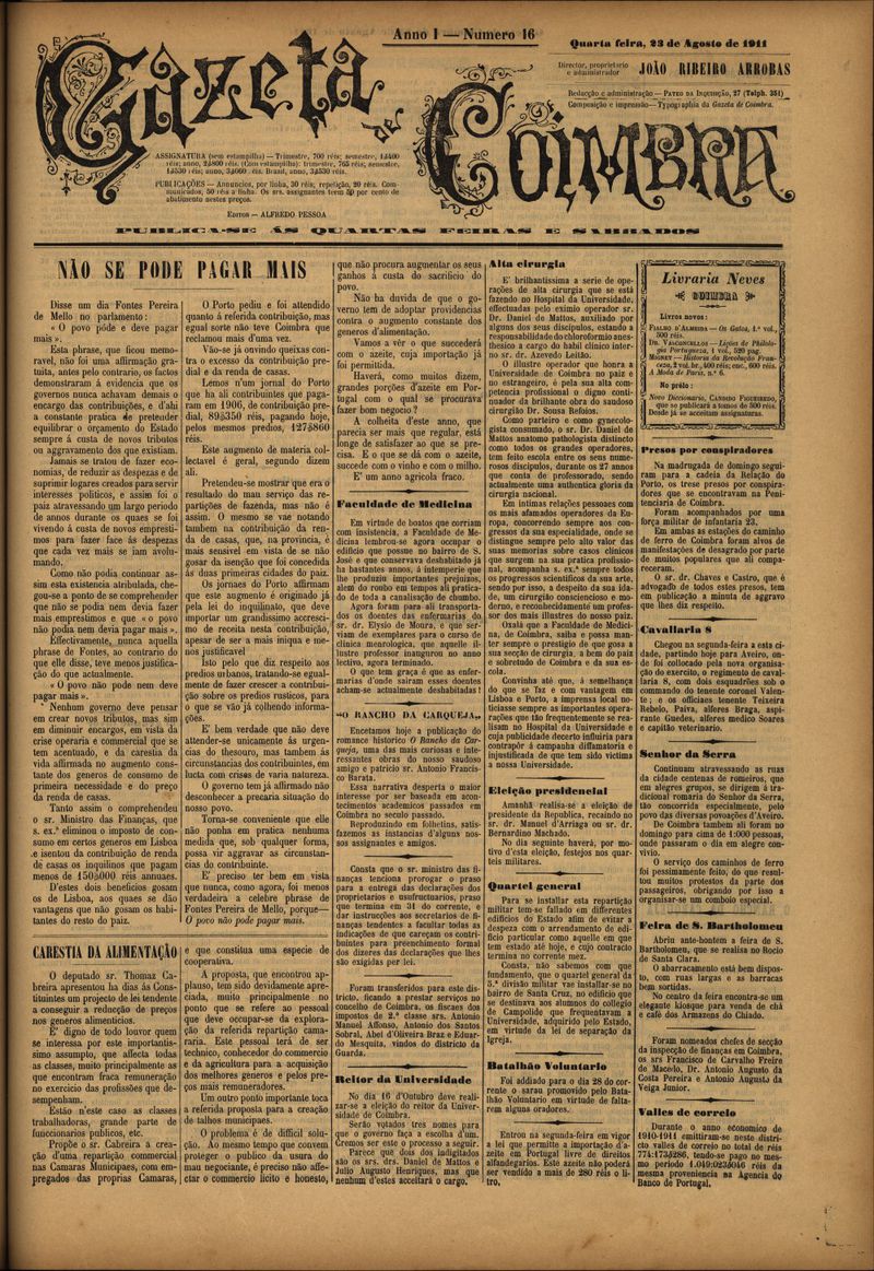 Gazeta de Coimbra 1911, Agosto 23, quarta-feira - Nº16