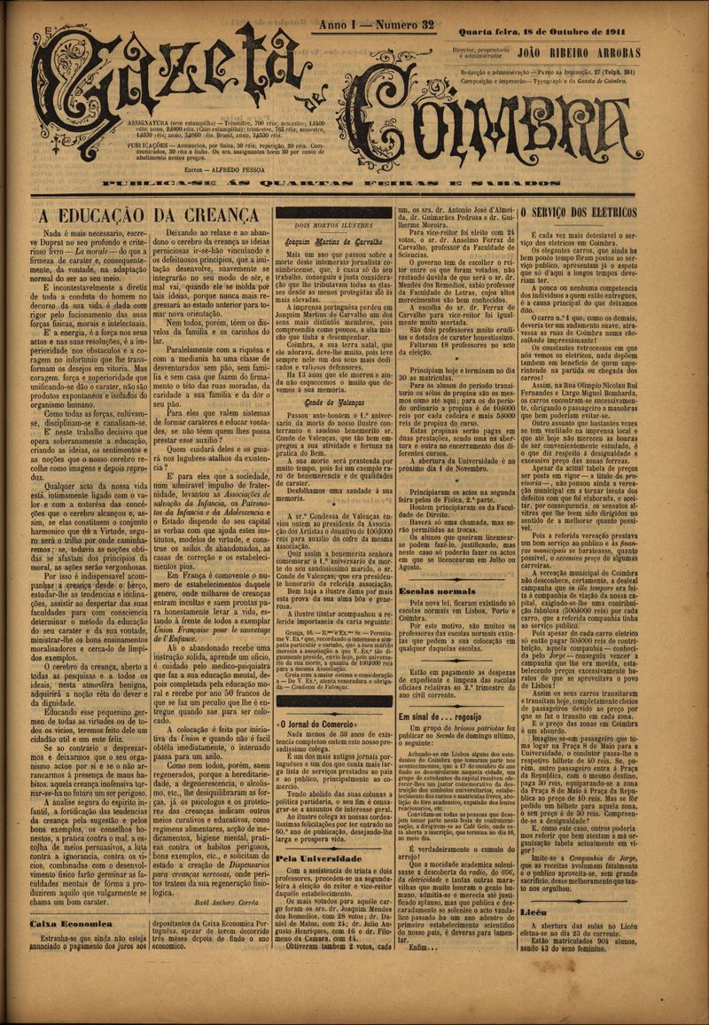 Gazeta de Coimbra 1911, Outubro 18, quarta-feira - Nº32