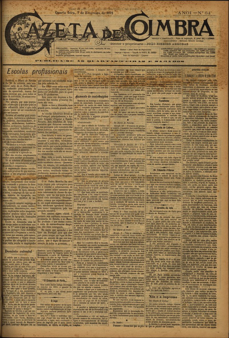 Gazeta de Coimbra 1912, Fevereiro 07, quarta-feira - Nº64