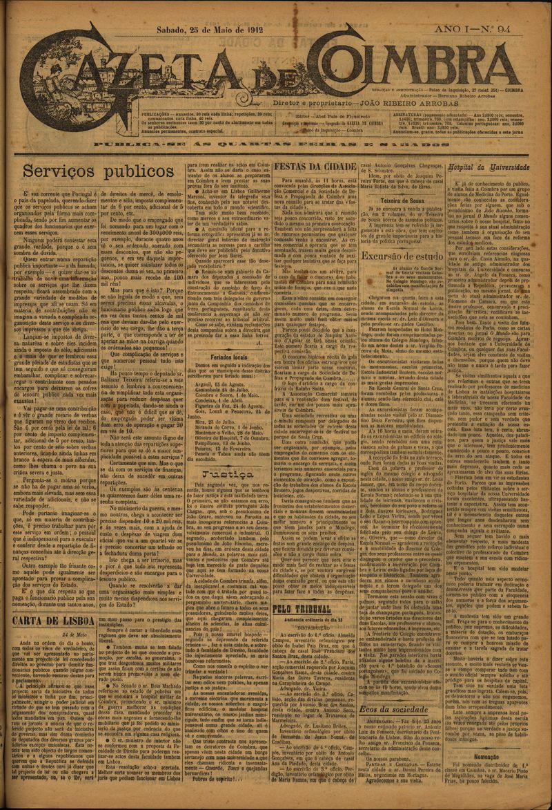 Gazeta de Coimbra 1912, Maio 25, sábado - Nº94