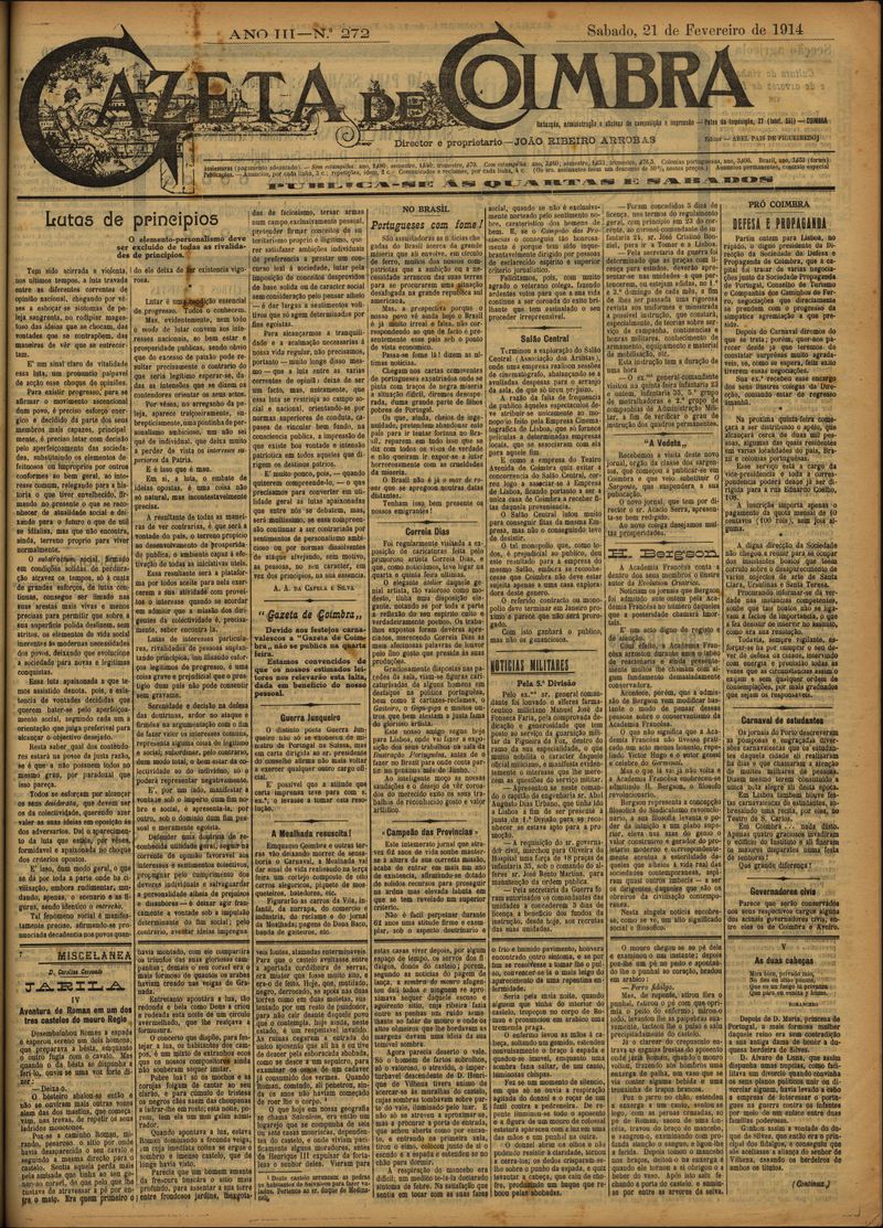 Gazeta de Coimbra 1914, Fevereiro 21, sábado - Nº272