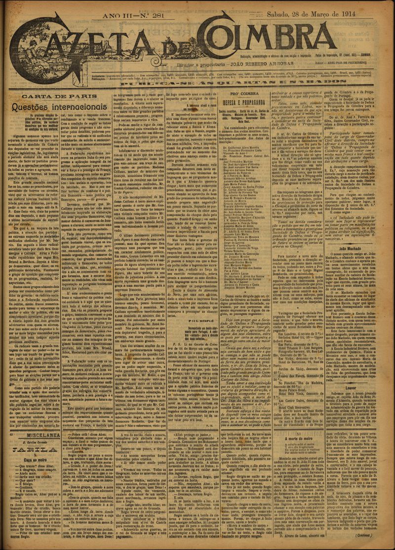Gazeta de Coimbra 1914, Março 28, sábado - Nº281