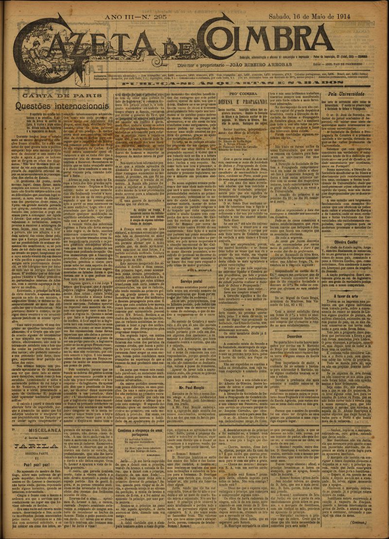 Gazeta de Coimbra 1914, Maio 16, sábado - Nº295