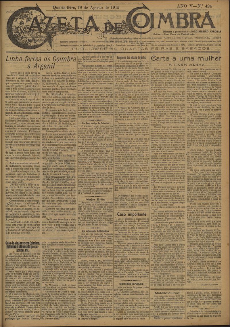 Gazeta de Coimbra 1915, Agosto 18, quarta-feira - Nº424