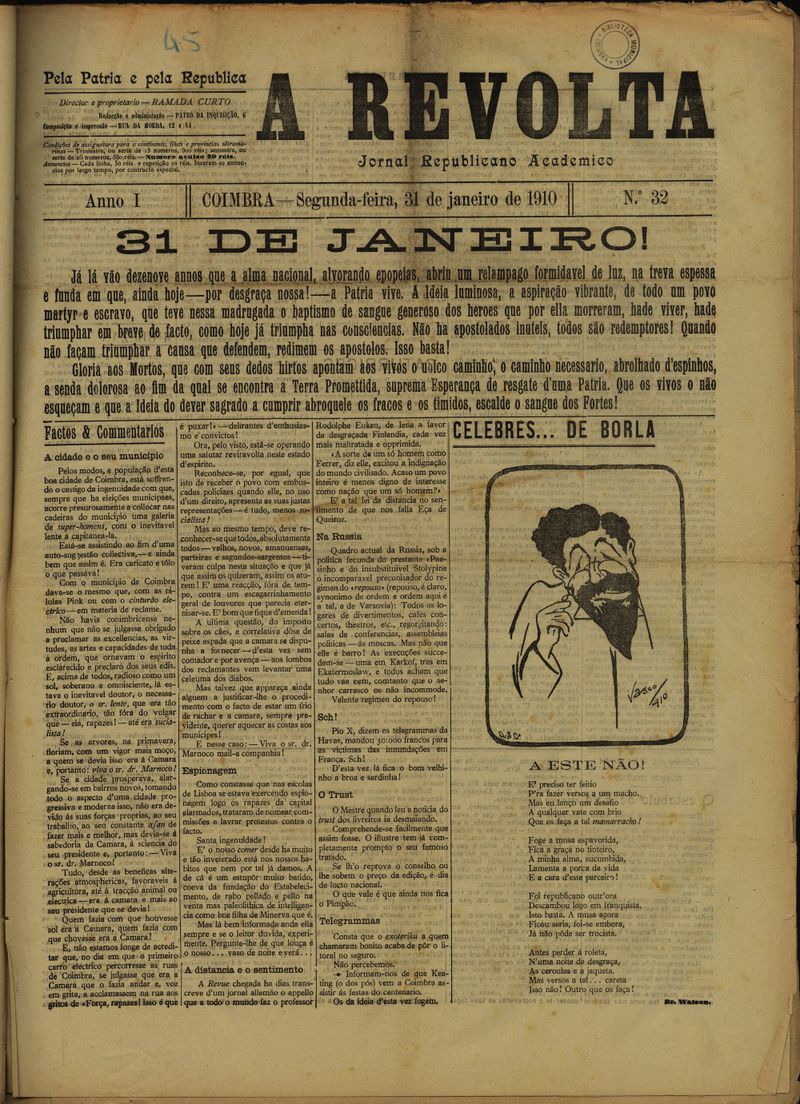 A revolta : semanário republicano académico Nº32