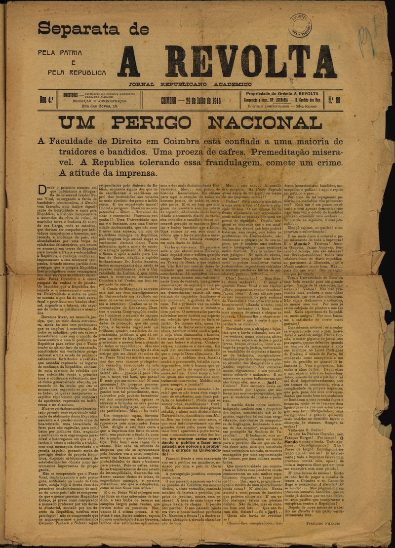 A revolta : semanário republicano académico