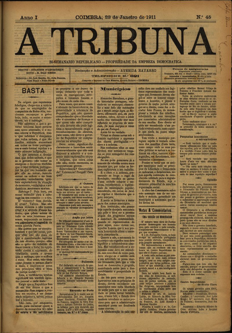 A tribuna : semanário republicano que se publica às quartas-feiras - Nº45