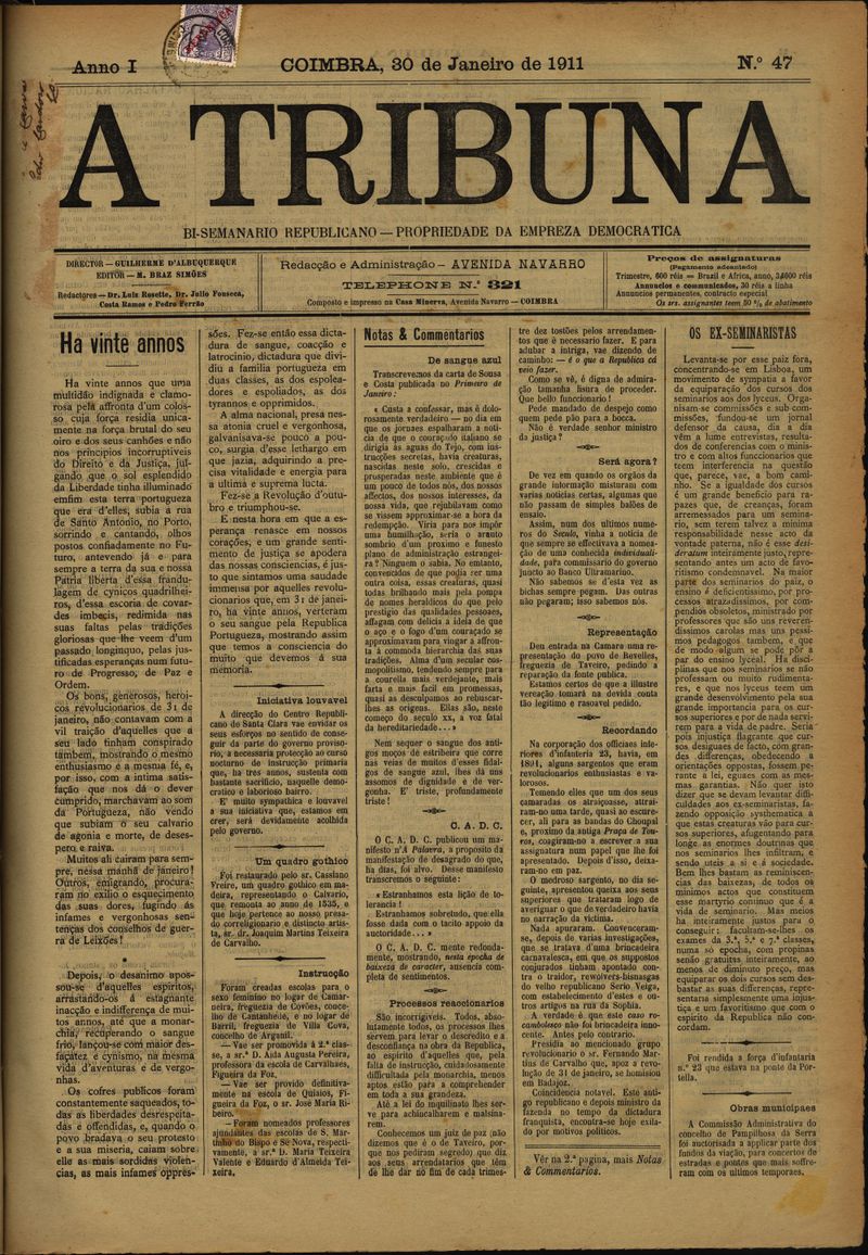 A tribuna : semanário republicano que se publica às quartas-feiras - Nº47