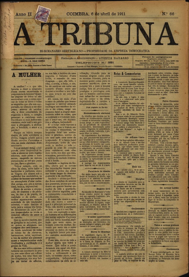 A tribuna : semanário republicano que se publica às quartas-feiras - Nº66