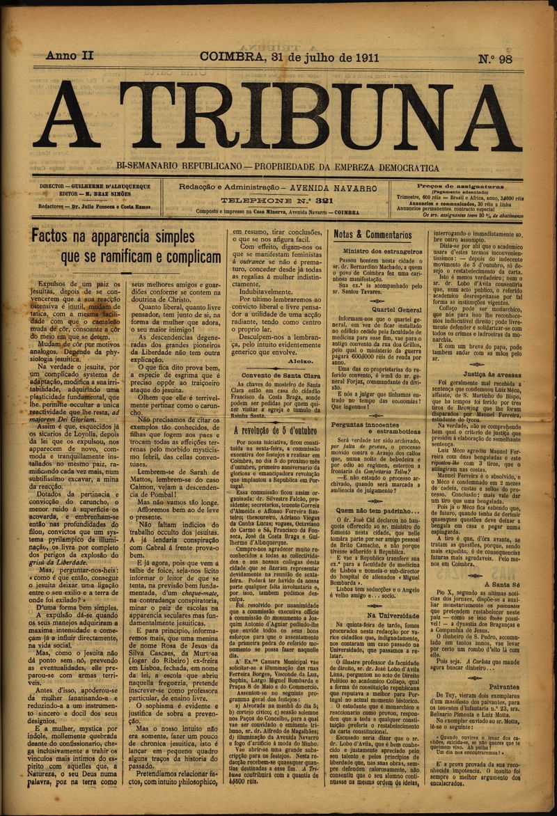 A tribuna : semanário republicano que se publica às quartas-feiras - Nº98