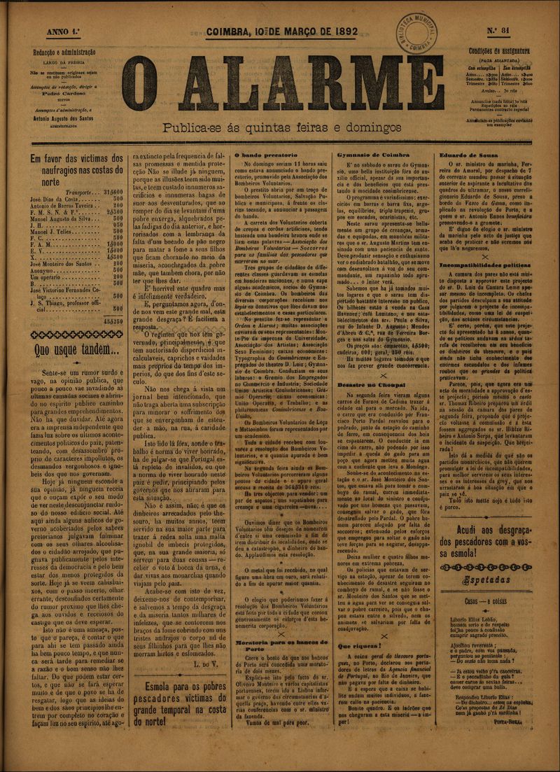 O alarme - 1892, Março 10, quinta-feira - Nº81