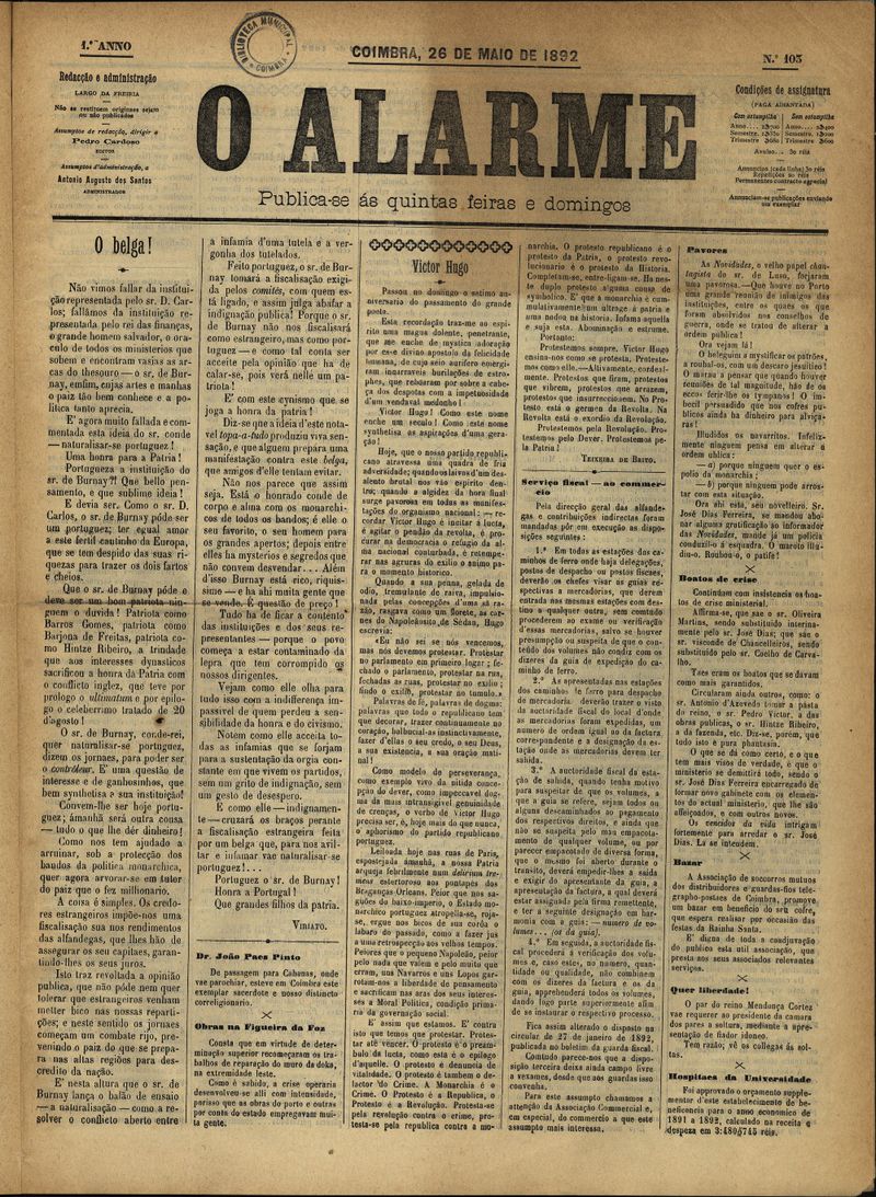 Coimbra : Pedro Cardoso, 1891-1892