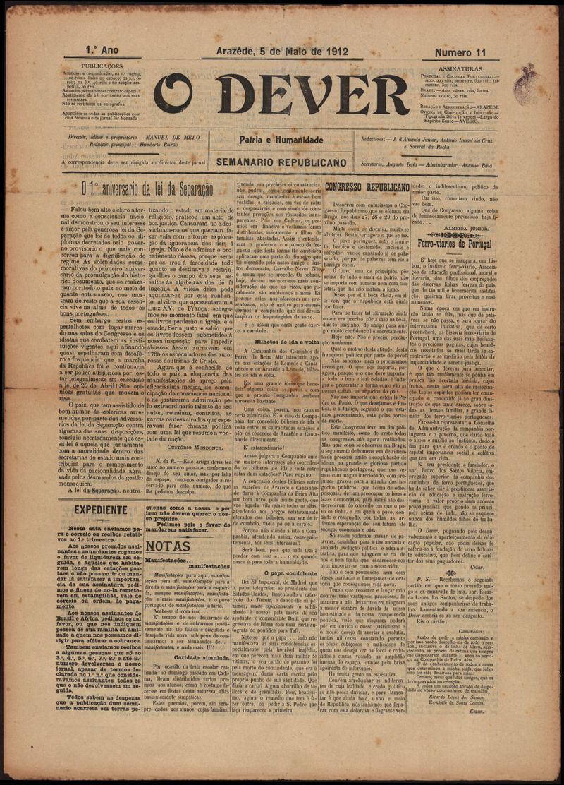 O dever : semanário republicano 1912-05-05