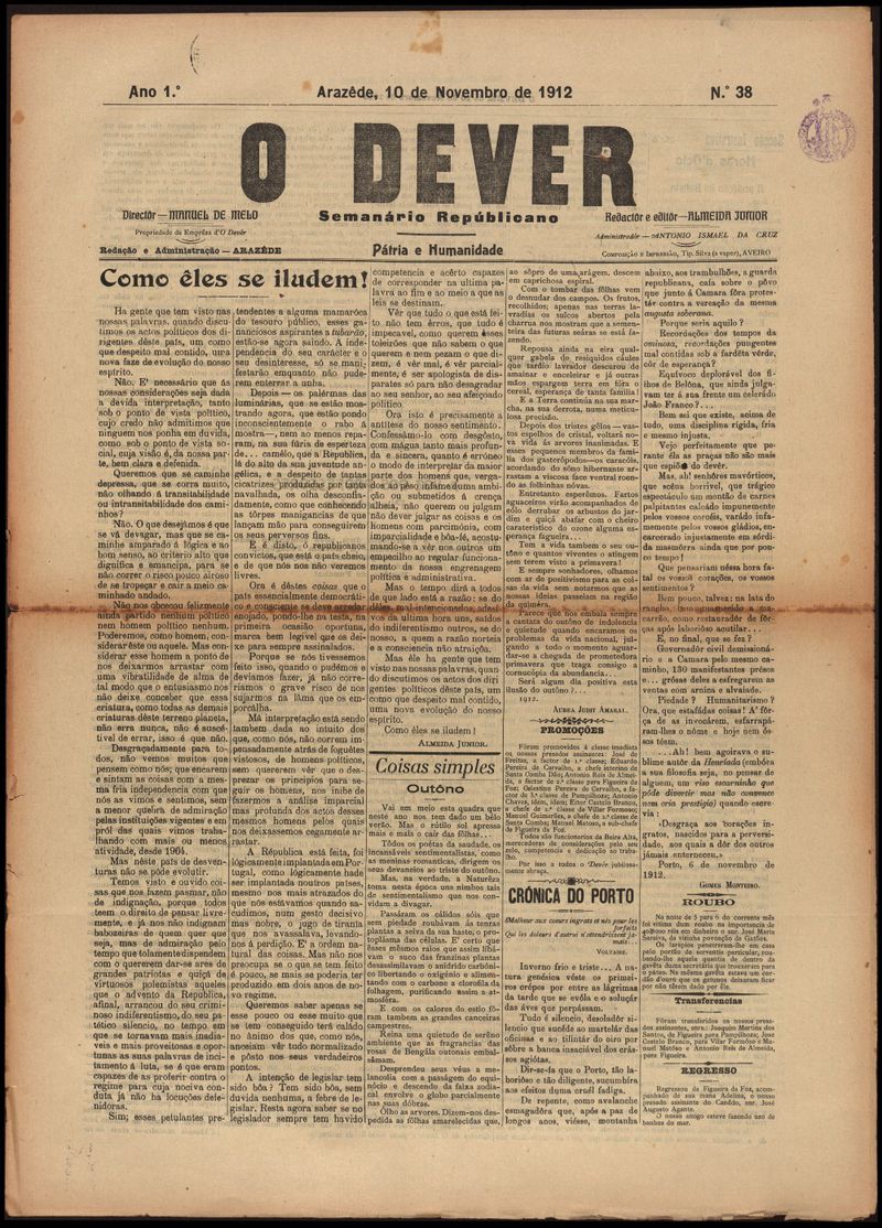 O dever : semanário republicano 1912-11-10