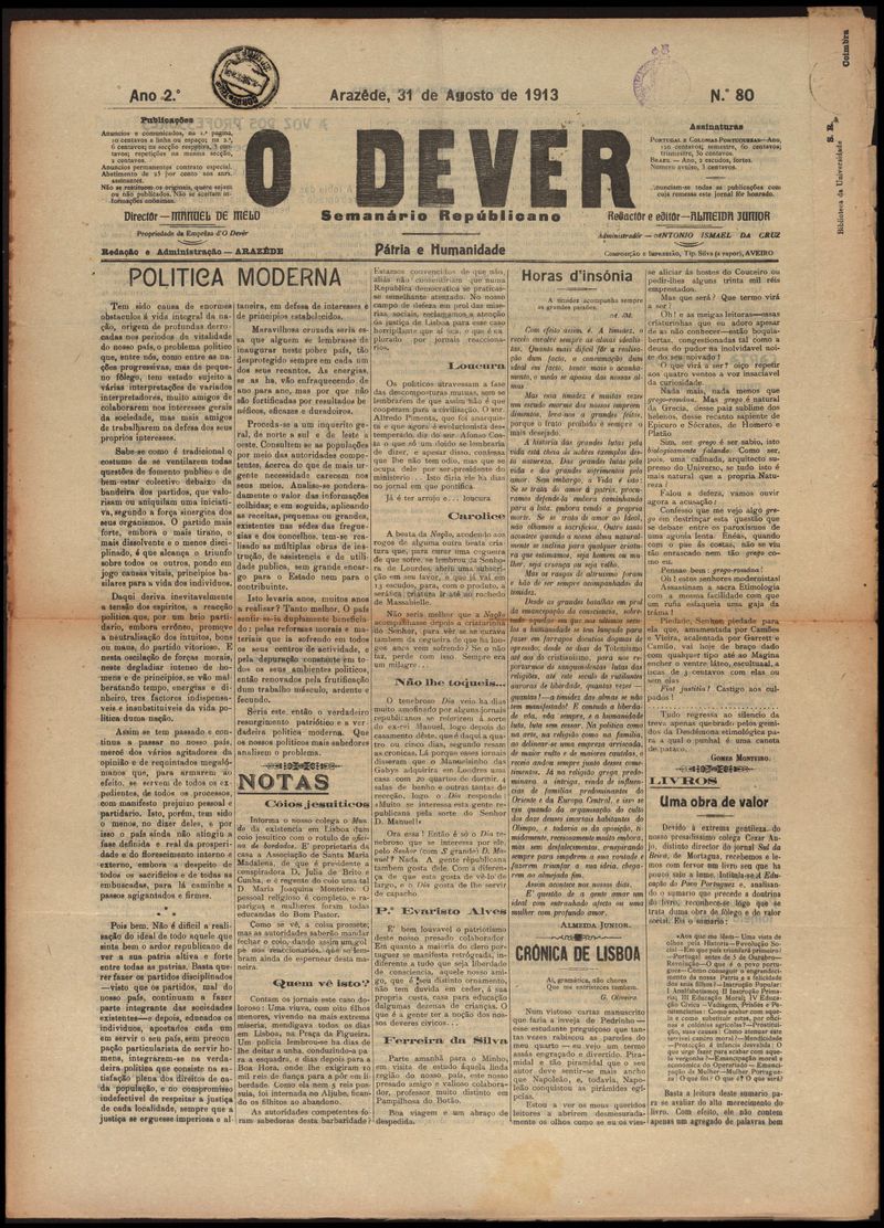O dever : semanário republicano 1913-08-31