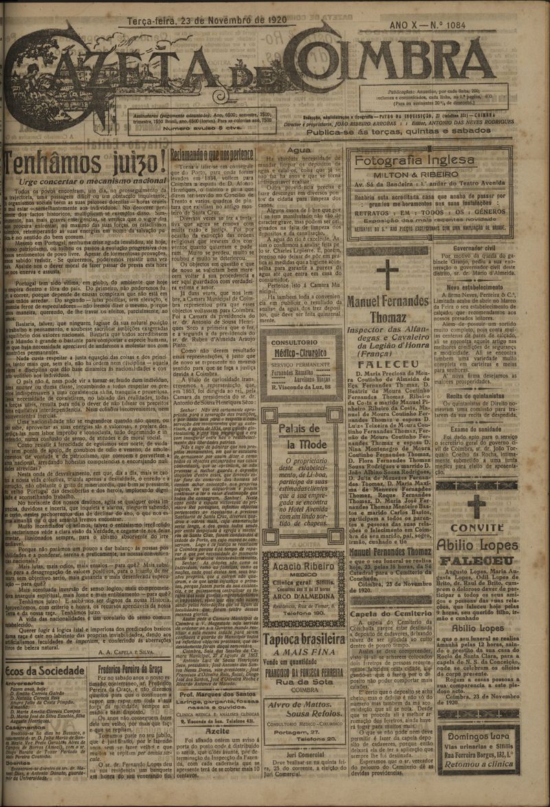 Gazeta de Coimbra 1920, Novembro 23, terça-feira - Nº1084
